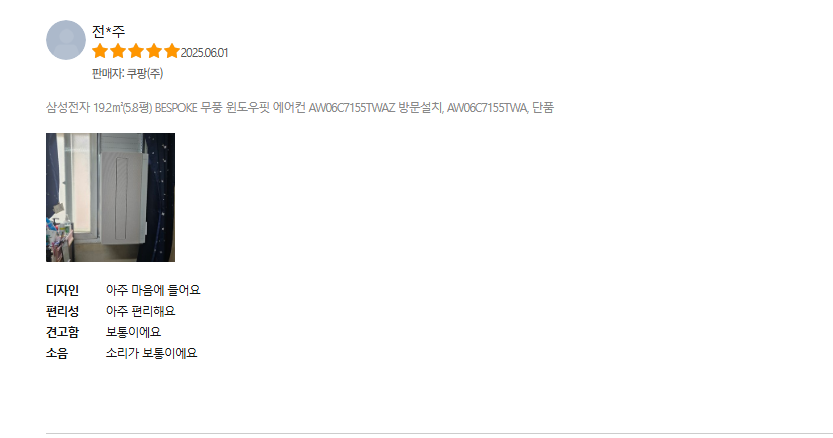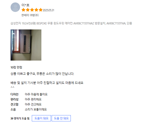 - 에너지 효율 : 전기세도 많이 나오지 않아 가성비가 좋다는 느낌을 받았어요.