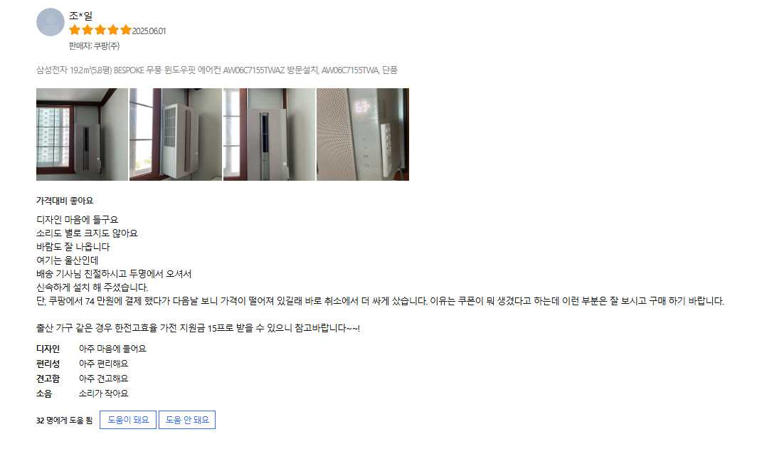 결론적으로 말씀드리자면, 삼성전자 무풍 윈도우핏 에어컨은 여름철 필수 아이템이 될 수 있는 제품이에요. 특히 소음이 적고 디자인이 깔끔해서 사용하기에도 좋고요. 몇 가지 아쉬운 점이 있지만, 전반적으로 만족스러운 구매였어요. 여름철 더위를 날려줄 아이템을 찾고 계신다면, 고려해보셔도 좋을 것 같아요!